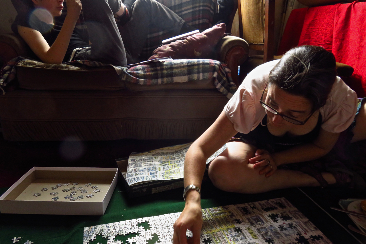 We had visitors in the house today, and this will make no more difference to anyone’s life than if we were to do the same thing next week. Unless you ascribe to the views of the moronocracy, who’d rather blame us for their own failings, and screw up local economies just that little bit more. Meanwhile, Ellie & Marcus work on the jigsaw. It’s half-term.