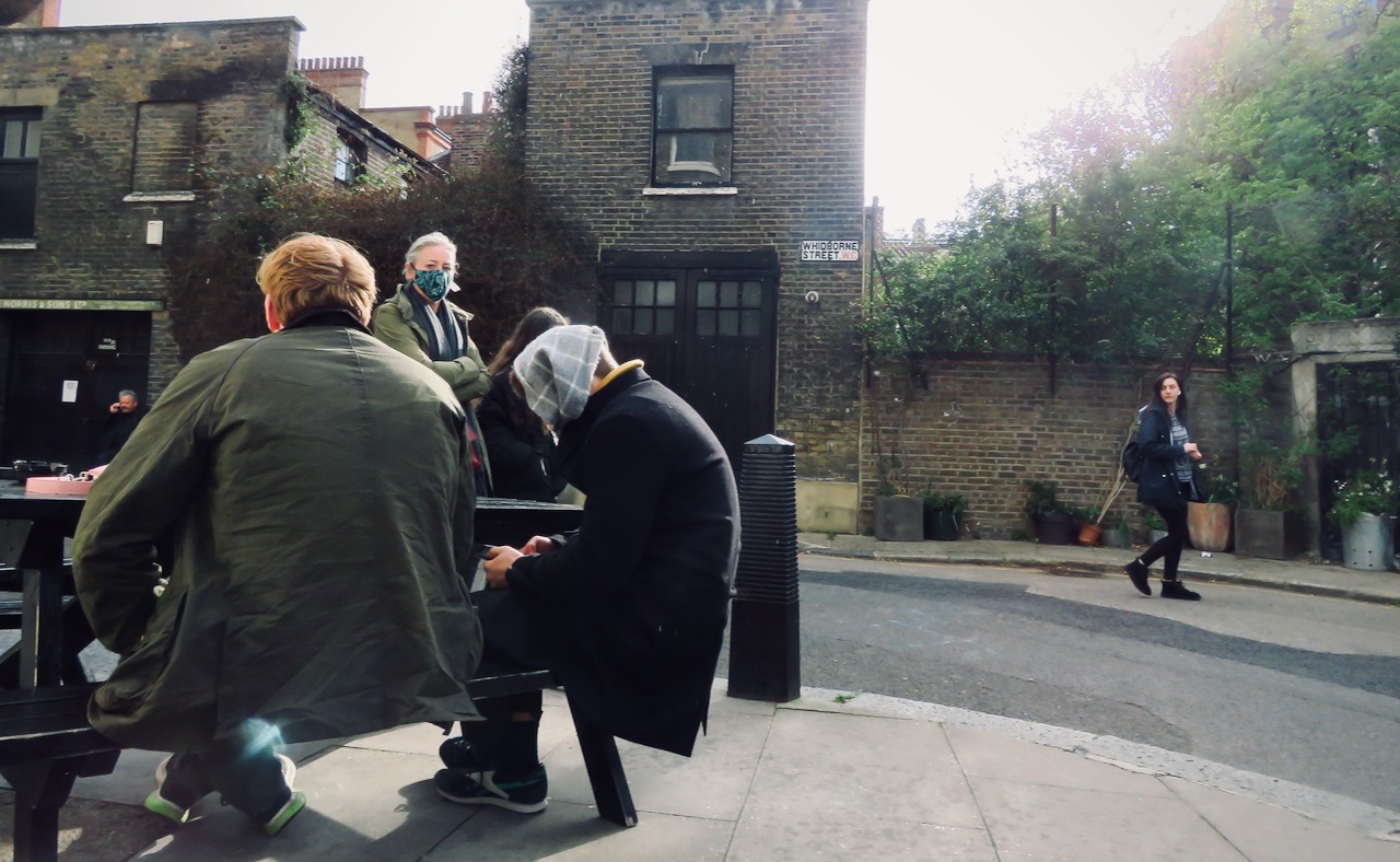 Back in the long hot days of June 2018 I spent a whole working week in London, most of it here, in McGlynn’s pub on Whidborne Street (see this photo for instance). Finally it is open again, albeit for outside drinking only, so I and the other customers stoically ignore the fact that it is about to rain. Tonight’s real significance was that this was the first night I have spent away from home in 2021. Life, of a sort, returns: but not yet in full.