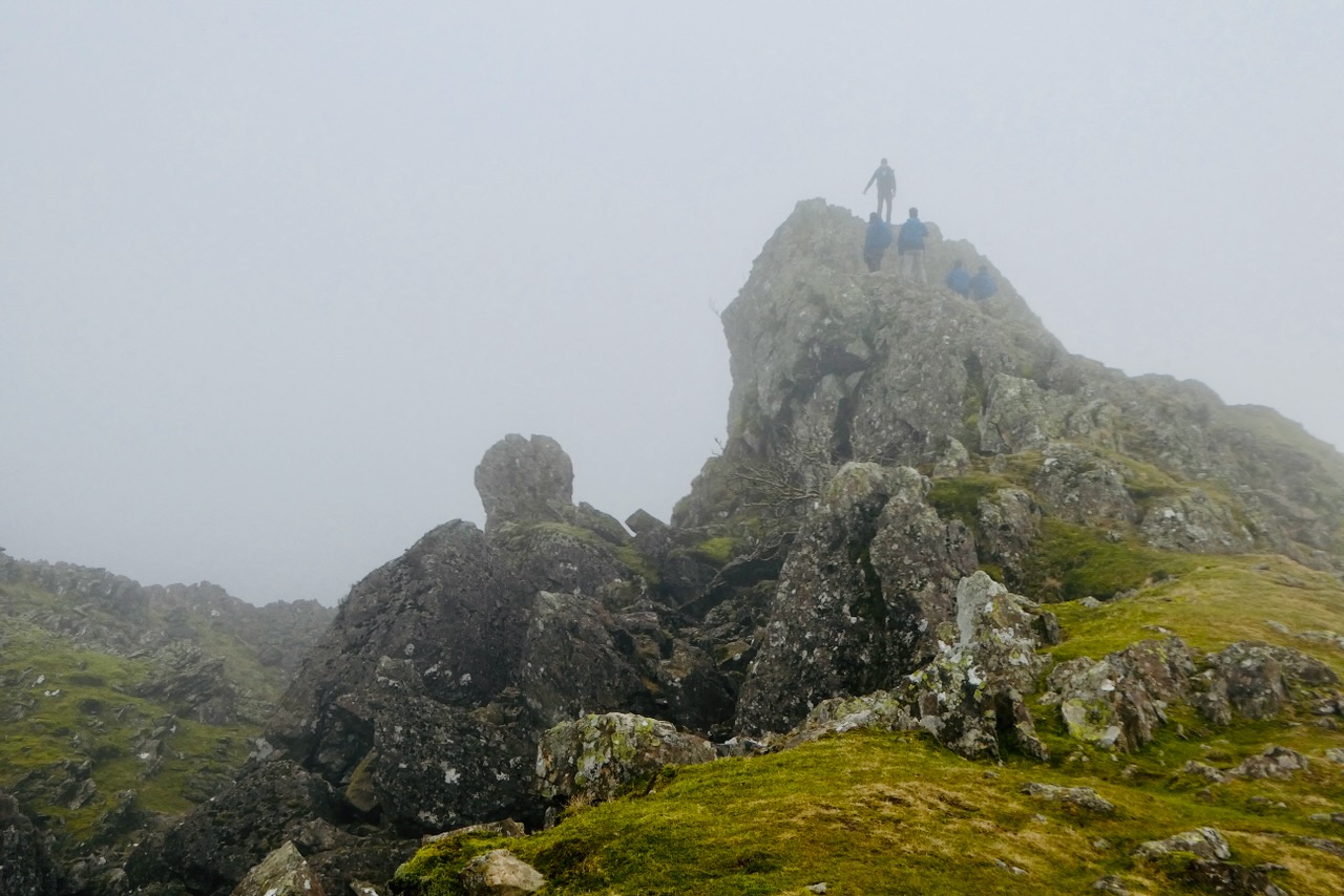 These guys stand at the top of Grains Gill, which runs into the heart of the District south from Borrowdale. I have just come off Great End, which would, toponymically, made a good finishing point but it turned out to be my penultimate fell — from here there is still Seathwaite Fell to come, just to the left of this shot.
