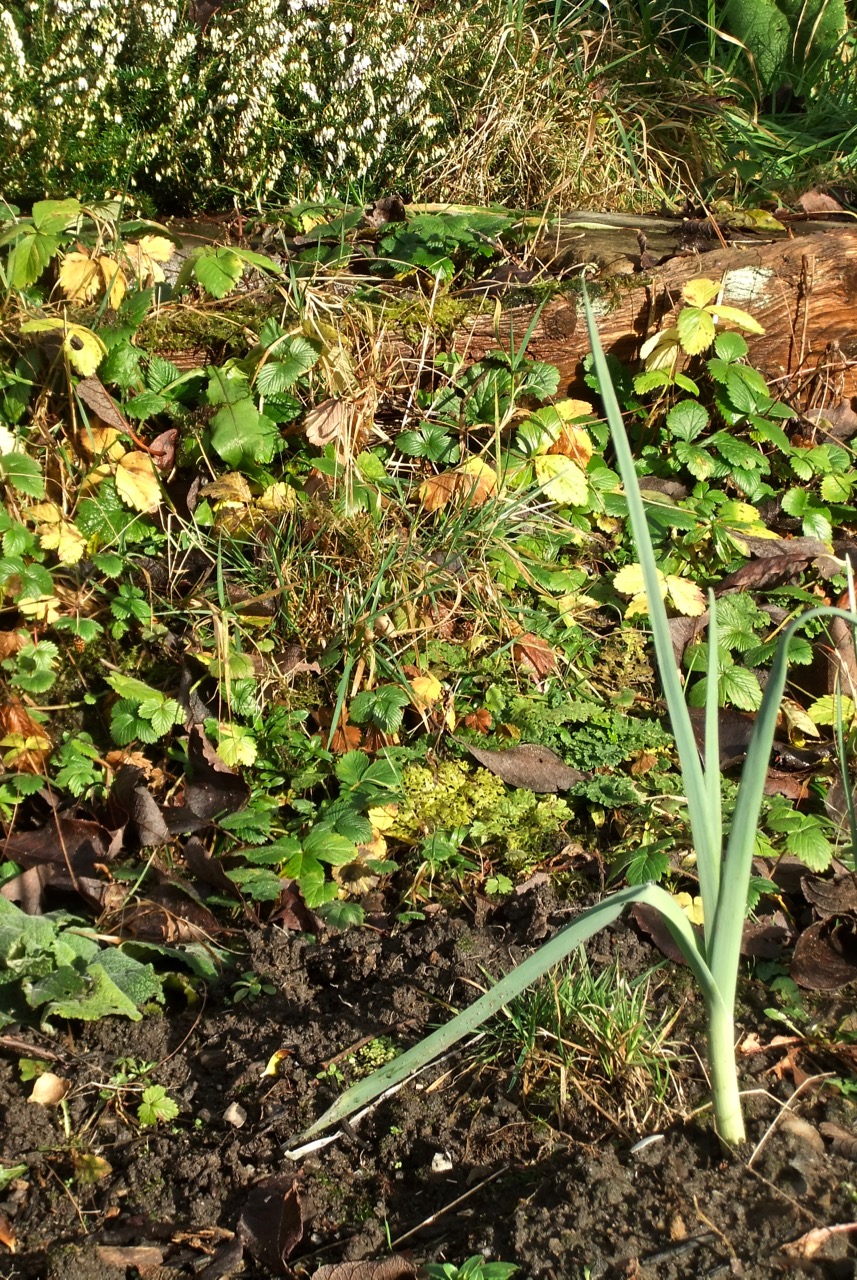 The leeks have grown way better this year than in any previous year. We could say it’s the good weather — and it continues to be mild and pleasant, Wednesday’s sprinkling of snow notwithstanding — but actually I reckon it’s the discovery of ‘Baby Bio’ fertiliser. Which probably means these no longer count as ‘organic’, but what the hell, the one we ate this evening was very tasty. Not that you eat these bits of the plant, however.
