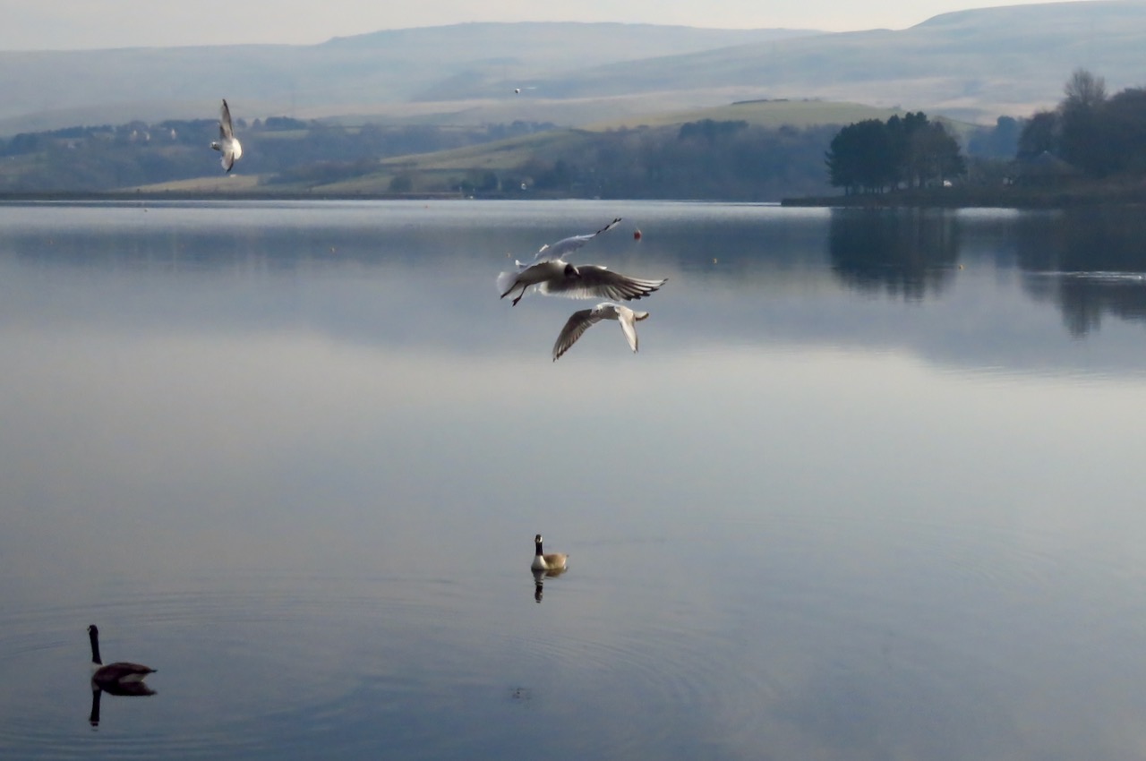 Back home, back to the grey and gloom of a northern December, the everyday of the train journey to Manchester (here at Littleborough). It had to happen. LIke the birds speckled across this shot, let’s just live with it.