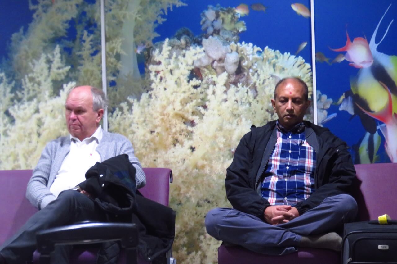 I do like this picture, or I wouldn’t have chosen it — I always like the juxtaposition of so many random people in airports, and wonder where the yogi is off to (beyond just the answer ‘Amsterdam’, which is where the 05:55 KLM flight goes to, always the first flight to leave Manchester on any given day). The aquatic mural behind them is an added bonus.
