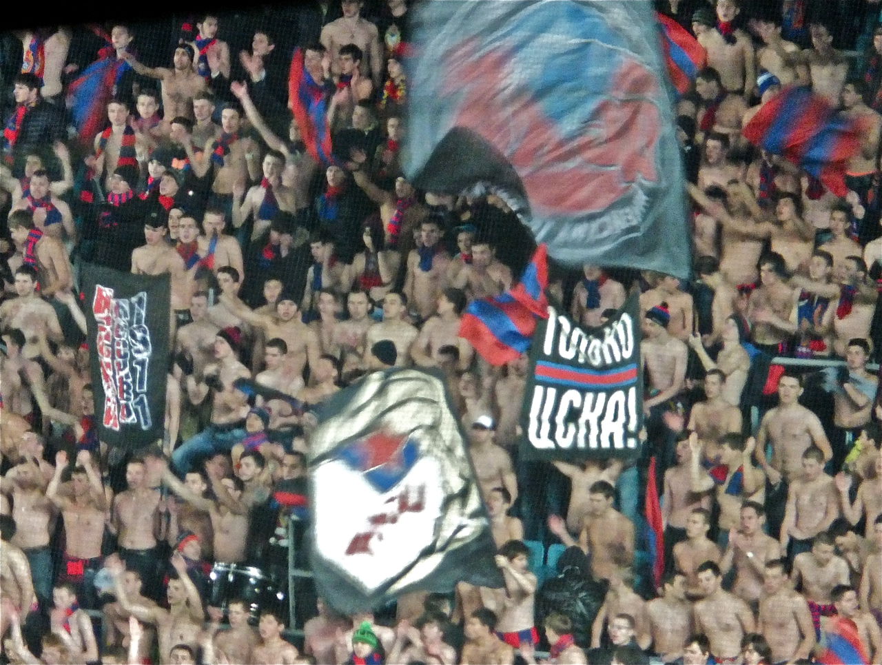 Experience it definitely was, and a good one. It was also a cold one, below zero for most of it, including the last 15 minutes during which these 200 or so CSKA fans bravely took their shirts off. I apologise for the technical deficiencies of the shot but bear in mind this was taken at an angle, with a very long zoom, through plexiglass.