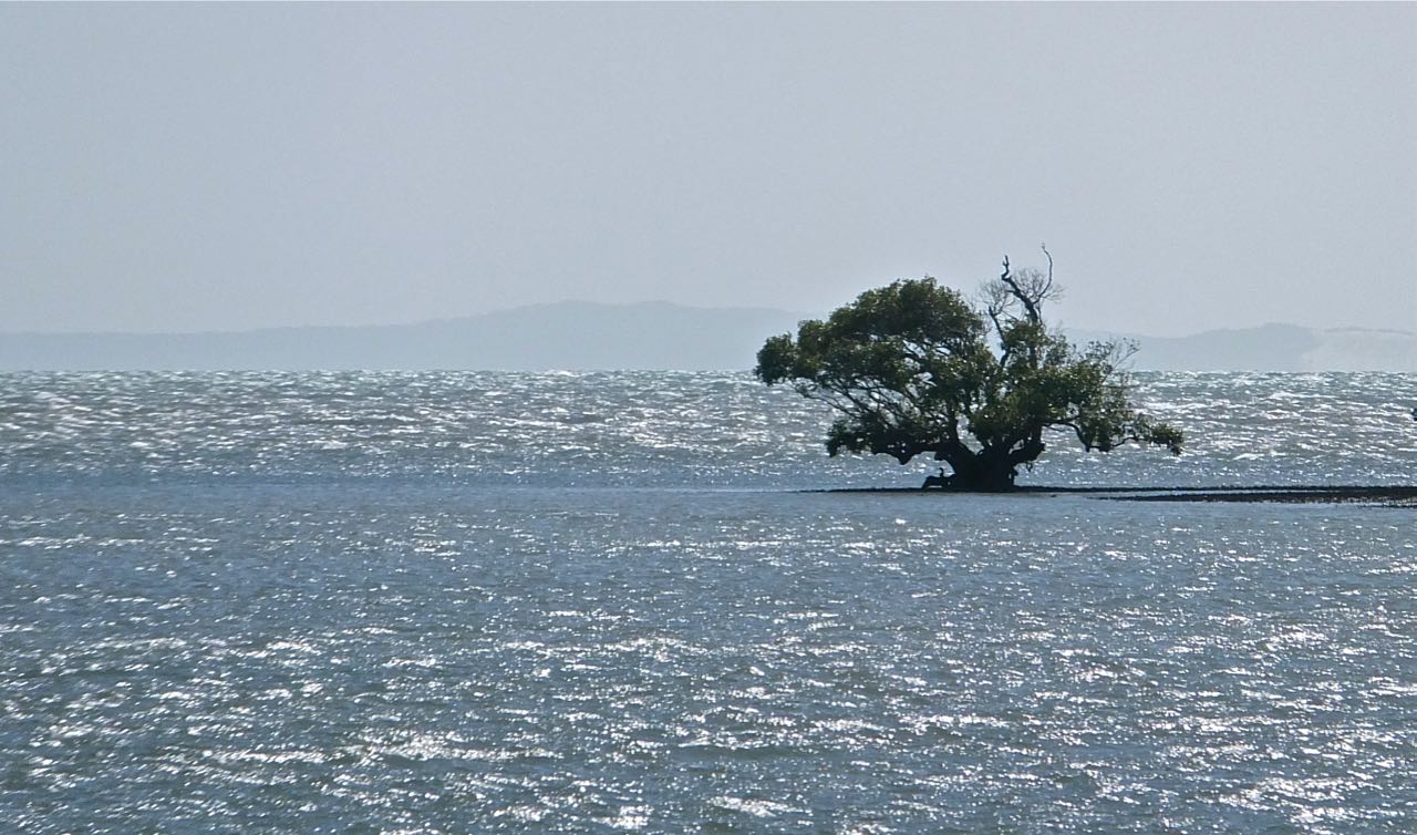 Pictured as we returned to the mainland from Stradbroke Island: that’s it on the horizon. I like this shot for the way the sea evokes a snowy moor in Yorkshire in January, or possibly silver foil?