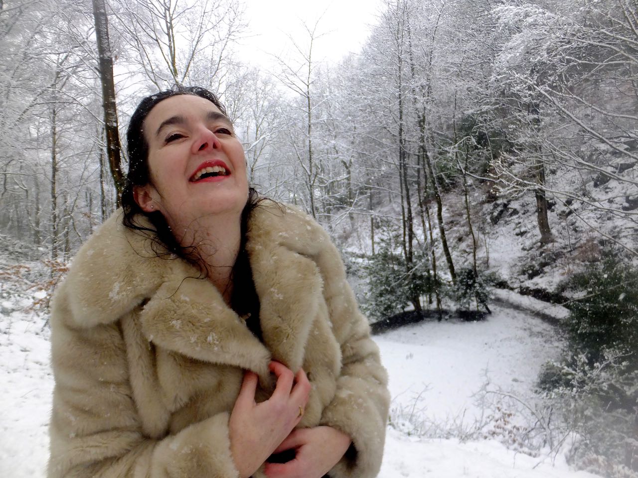 It snowed again. A lot. Enough to make it kind of enjoyable, and that’s why I like this picture — the look of pleasure on Clare’s face. OK, let’s self-criticse about the tree growing out of her shoulder, but hey.