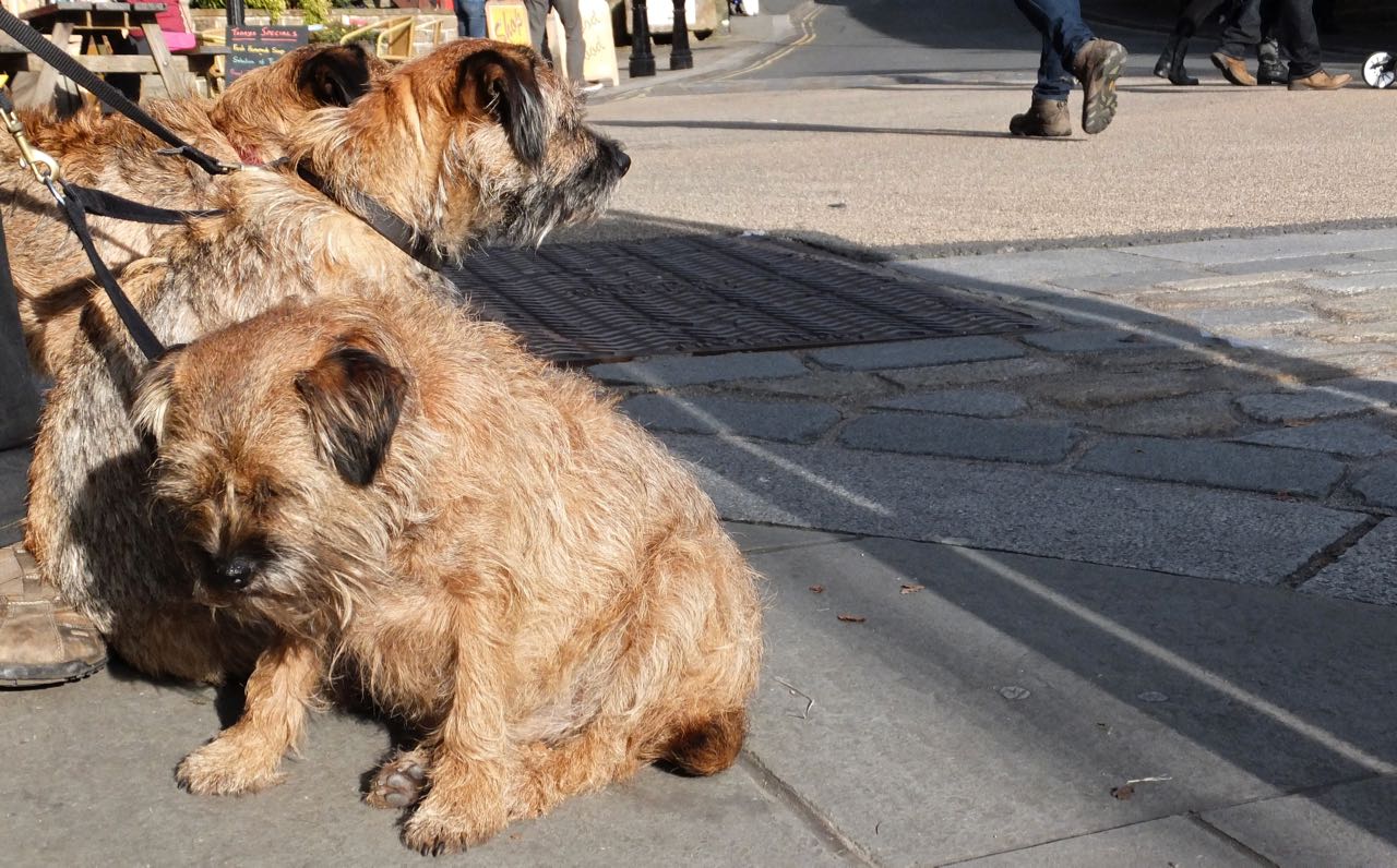 With no posts for ten days perhaps you thought I’d finally given up the ghost, or at least the blog had — but no, ’twas that old staple, “computer problems”. Not entirely solved now, so bear with me, but I shall start on the catching-up process at least. This encounter seems quite a while ago now, but one can see the basic curiosity-mingled-with-sheer-terror that this little dog exhibits, faced with this giant Newfoundland. Yes, they are the same species. That’s genetic engineering for you.