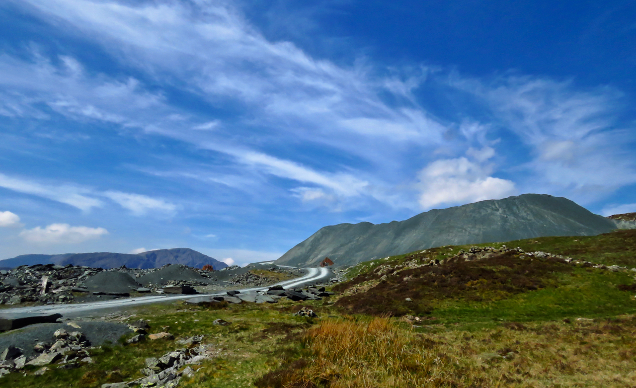 These impressive crags would grace any mountain in the Lake District or Scotland, but instead can be found, perhaps unexpectedly, in Leicestershire — specifically on Bardon Hill, the County Top of that territory. However, as is probably obvious, they are not natural formations. Instead this is the gigantic artificial hole of the Bardon Hill Quarry, source of, apparently, some 15% of the UK’s entire output of crushed stone (for roads etc). From the summit of the hill there is an immediate, and fortunately fenced-off, drop of at least 400 feet straight down to the quarry floor, as seen here. Is it ugly? I honestly don’t know. Interesting, anyway. (For more pictures from today see the latest County Tops blog post.)
