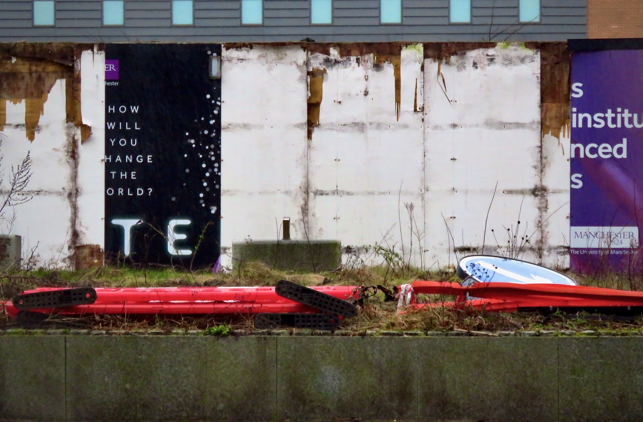 Going into Manchester gives my step count a boost and makes me feel like I’m doing something for the students, many of whom have travelled a very long way to be there and still been imprisoned for months on end in halls like the George Kenyon Building (a row of its windows forming the top of this image). But it’s depressing, all the same. In places, the rot has firmly set in. “How will you change the world?” this billboard asks. The question is an ever more pertinent one.