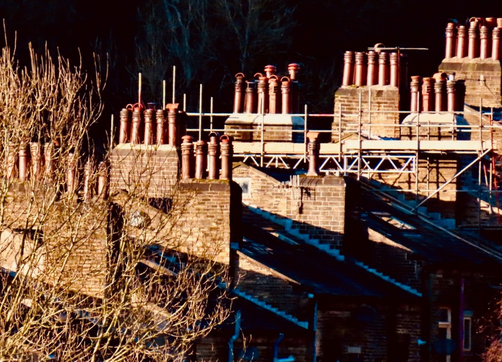 A cold day today. Of course, ‘cold’ by British standards is not cold by, say, Canadian or central European standards, but we notice it in our own way. Look, someone in Royd Terrace has even lit a fire.