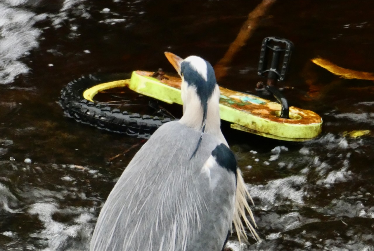 No Christmas break in sight for the herons, who still have to fish, and thereby eat. This one, rightfully, looks with some disdain at the litter that has been chucked in the Hebden Water next to its usual spot at the weir. Bloody humans, leaving their crap all over the place. And it’ll be there for weeks, I bet.