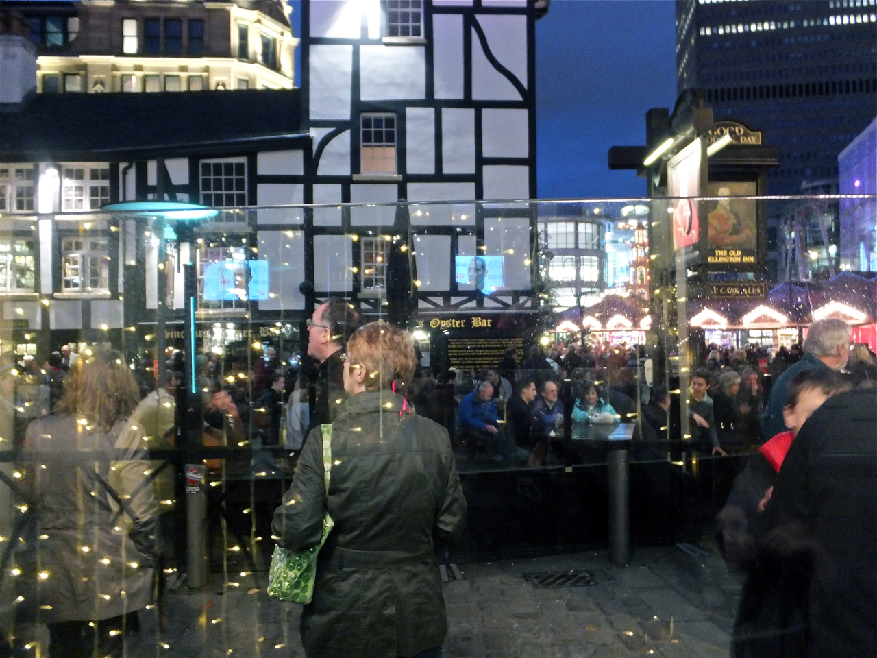 This is Sinclair’s Oyster Bar — oldest pub in Manchester, and also one of the most no-nonsense. Which is not to say it’s rough, because it’s not. But you get the drinks you’re given and you pay cash, and don’t expect plates of radicchio on the side. Best pub for Victoria station anyway — I know not only exactly how long it takes to walk from here, but how long it takes to specific platforms.