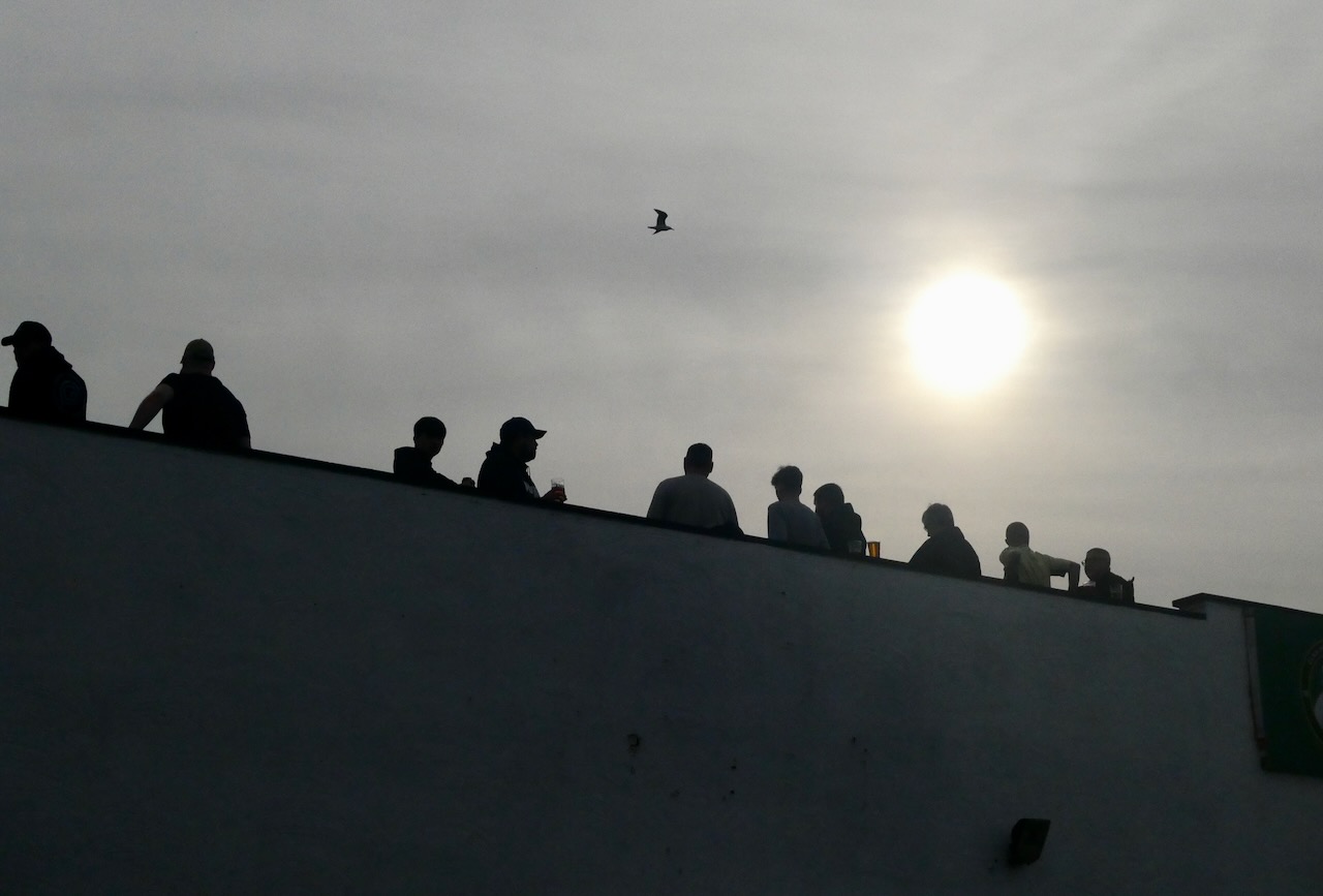 Going on somewhere between me and these two was a Sunday morning football match — the guy on the left started out as the goalkeeper but after about 15 minutes, having conceded two, he decided his shoulder wasn’t up to it so pulled out. First game of the season, too. At least his girlfriend was in attendance: which might have influenced the assessment of the injury’s seriousness. Behind them both — a bit of Leeds. August finally comes to an end; it seems a long time since I was in Orkney.