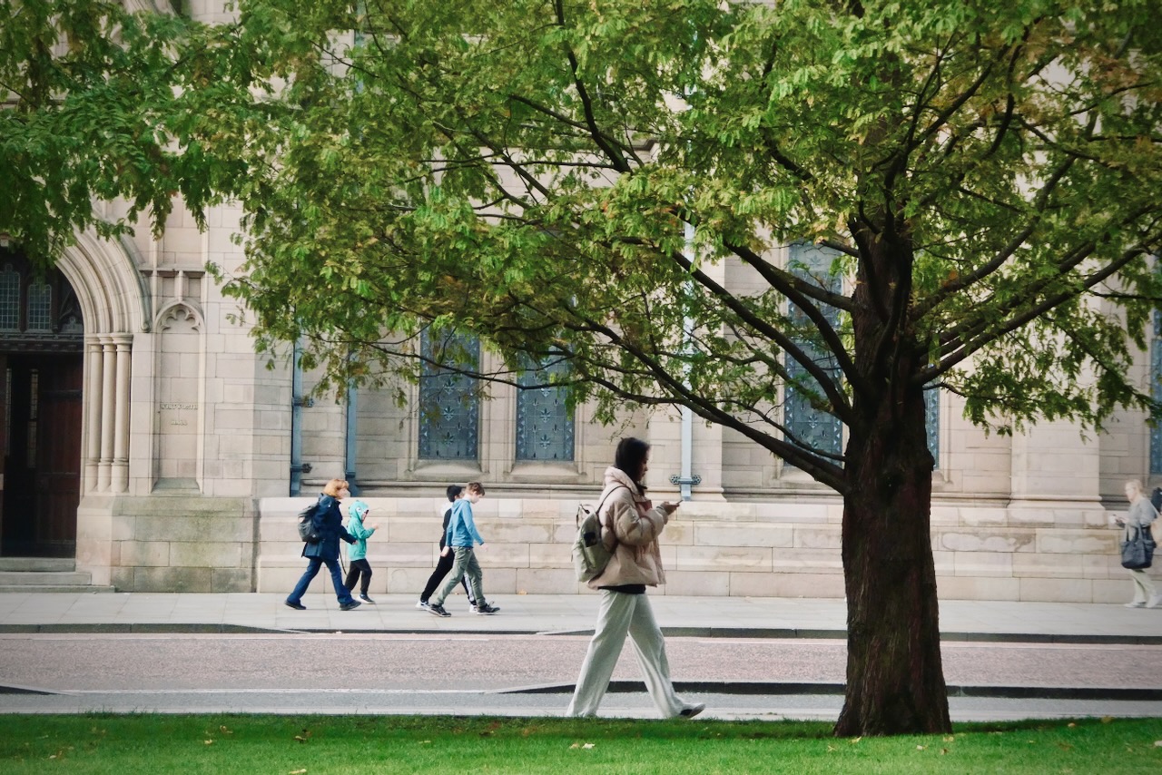 This is a fairly stock campus shot, but then again it was a fairly stock campus day. At least there are people in it, which is more than has been the case for several other recent photos.