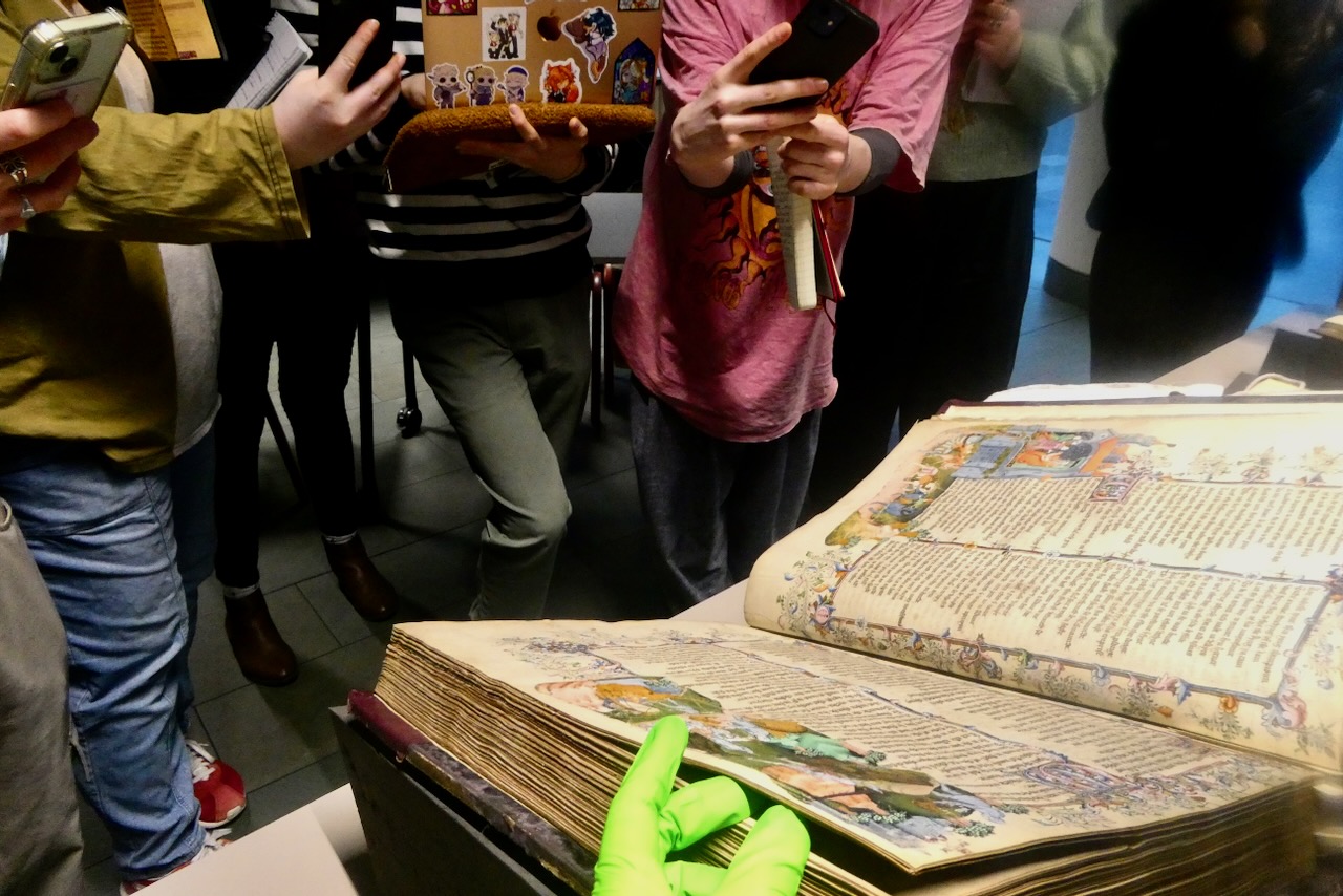 It’s about time we had some more medieval manuscript and the Siege of Troy certainly gives magnificent illumination. This shot only hints at that excellence but I like the captured enthusiasm of the fellow students. I took plenty of photos of my own, don’t worry.