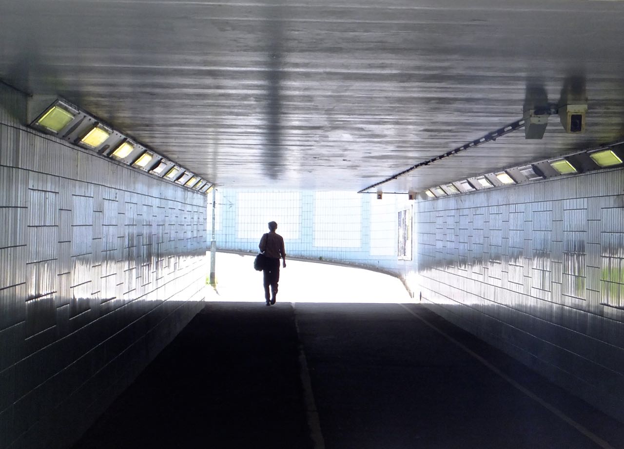 My first ever visit to Motherwell, in Scotland, which I can tell has been through its periods of post-war reconstruction as there’s something intrinsically 1960s about subways (I mean this in the British sense of a ‘pedestrian underpass’ rather than the American one of ‘underground railway’). There was a definite craze to build them around that time. This one’s been quite well decorated, something I probably fail to capture here.