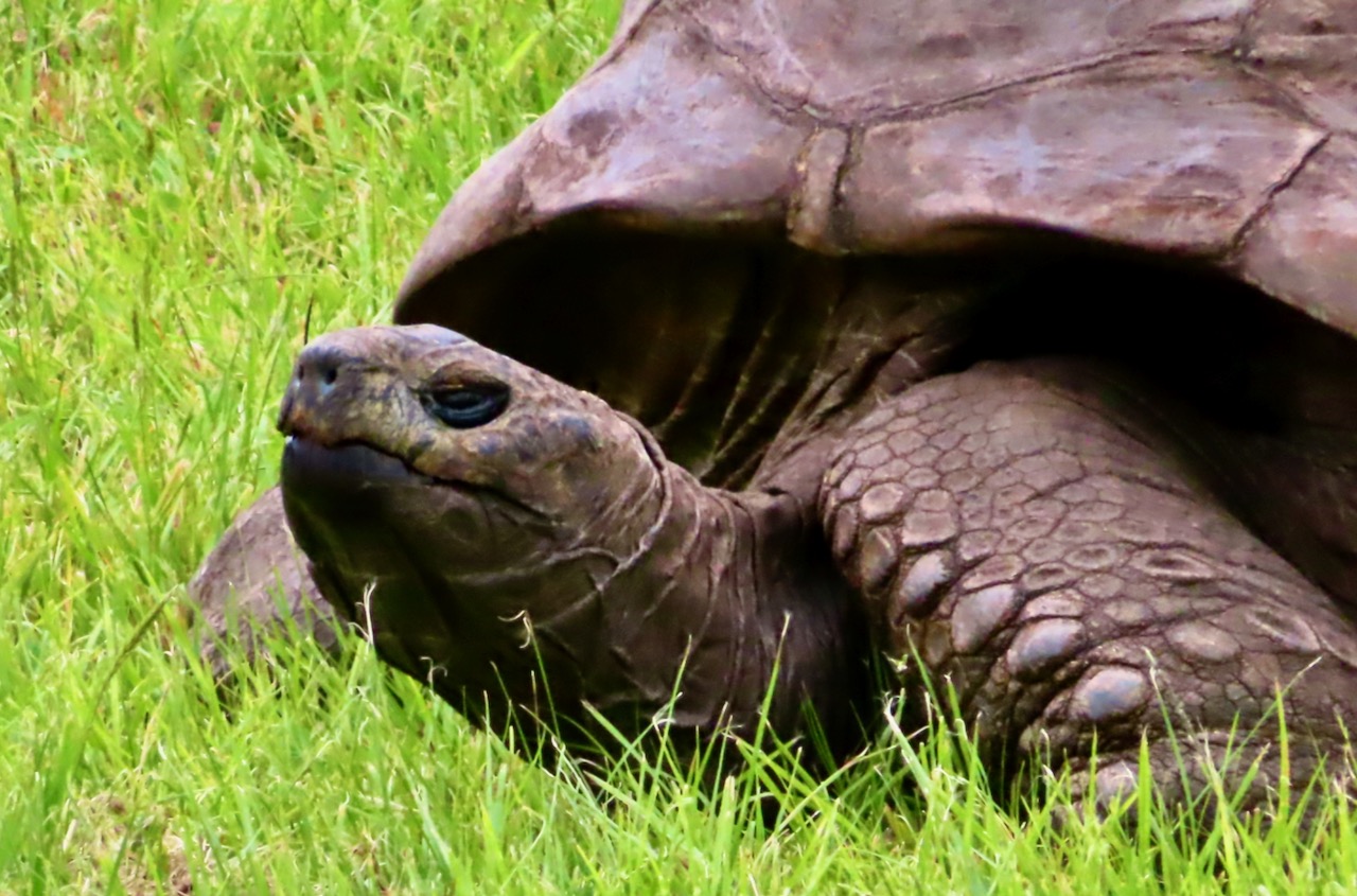 I took the morning off and came up to Plantation House, the residence of the Governor of St Helena, to do the tour, and like the other 7 people doing it with me, we stoically let ourselves be shown vaguely interesting items of furniture and portraits of the British royal family for 90 minutes or so in order that we could then get through to the real reason we were all there; to have the honour of meeting Jonathan, who at around 192 is the world’s oldest living land animal whose age is (more or less) known. And he did not seem at all bothered by his weekly dose of humans — seeming as interested in us as we were in him. I think he’s a complete dude, and could not resist making him the day’s image even though he’s appeared before. But he totally deserves his relative fame, if you ask me.