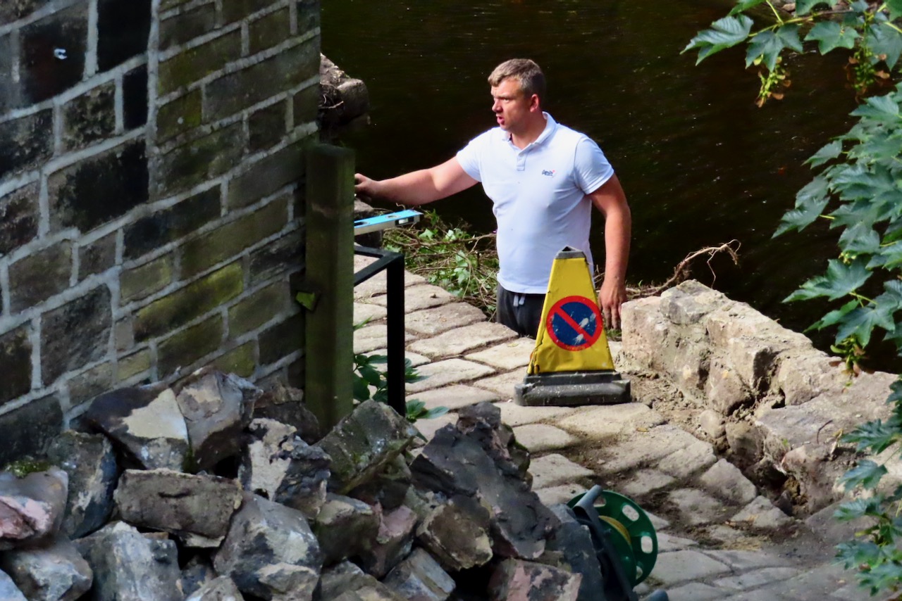 Even in Manchester, the Rochdale Canal usually looks a bit more aesthetically pleasing. Perhaps this is an accidental draining — it happens, people sometimes leave locks open. Or there is some big clean-up about to happen. Future archaeologists will love all this crap. Meanwhile, the runner on the left ponders whether a) he will be allowed to proceed more than another few yards and b) whether he is about to step on a pigeon.