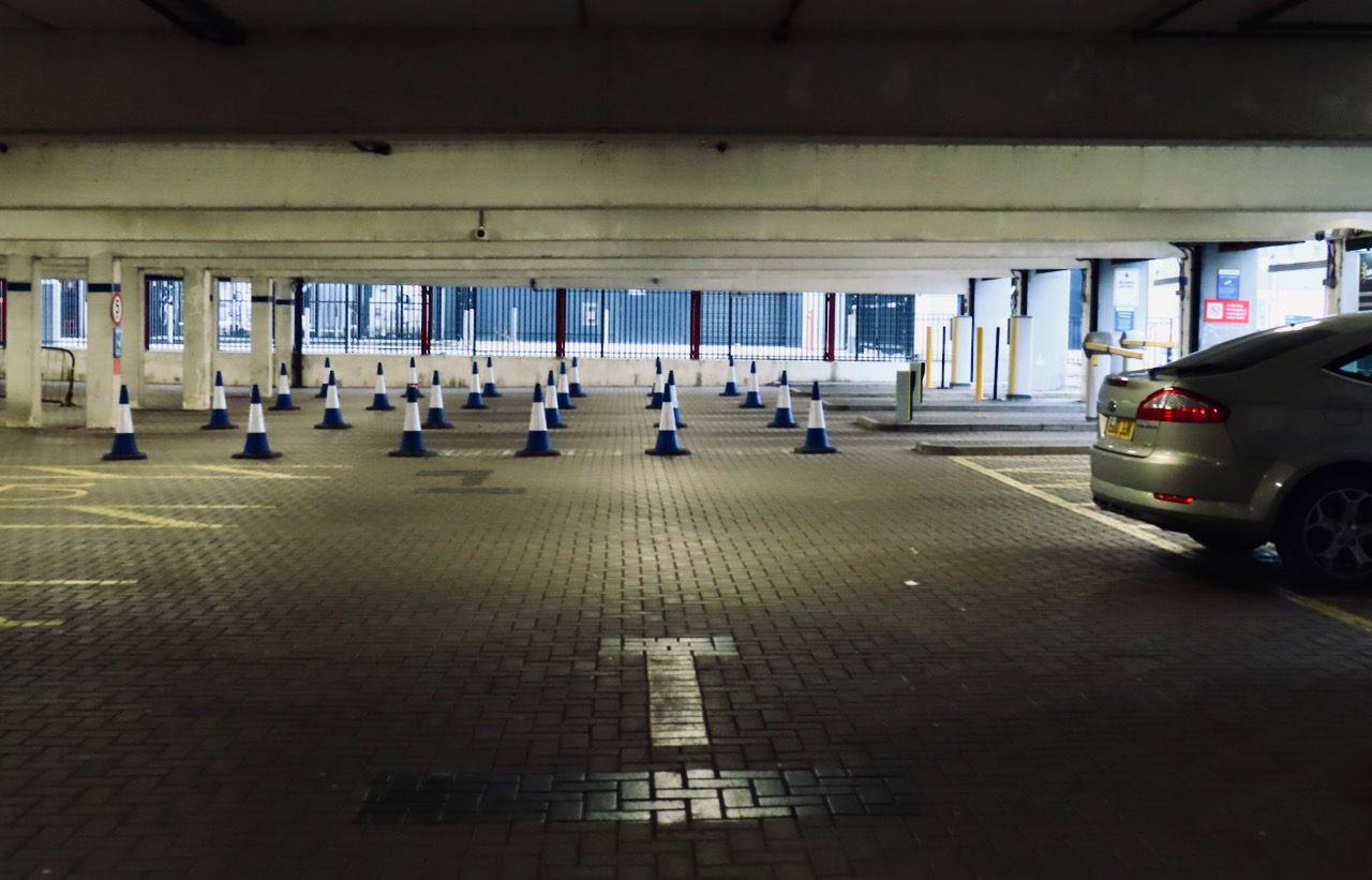 I have got it down to working about two Sundays a year, and today was one of them. Appearance on campus before 9am on the ‘day of rest’ allows the experience of the virtually empty car park, and its mysterious ‘T’. Maybe it was once an arrow, but not any more. A recent run of interiors continues.