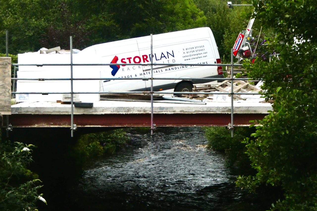 Hebden Bridge has its share of risky parking spaces — there’s the ‘Wing Mirror Two Inches From That 40-Tonne Truck Descending At Speed’ variety and more than a few ‘Garage Perched Precariously On Thin Pile Of Bricks (Above Terrifying Drop)’. But this is a new variety. I assume Storplan have good insurance.