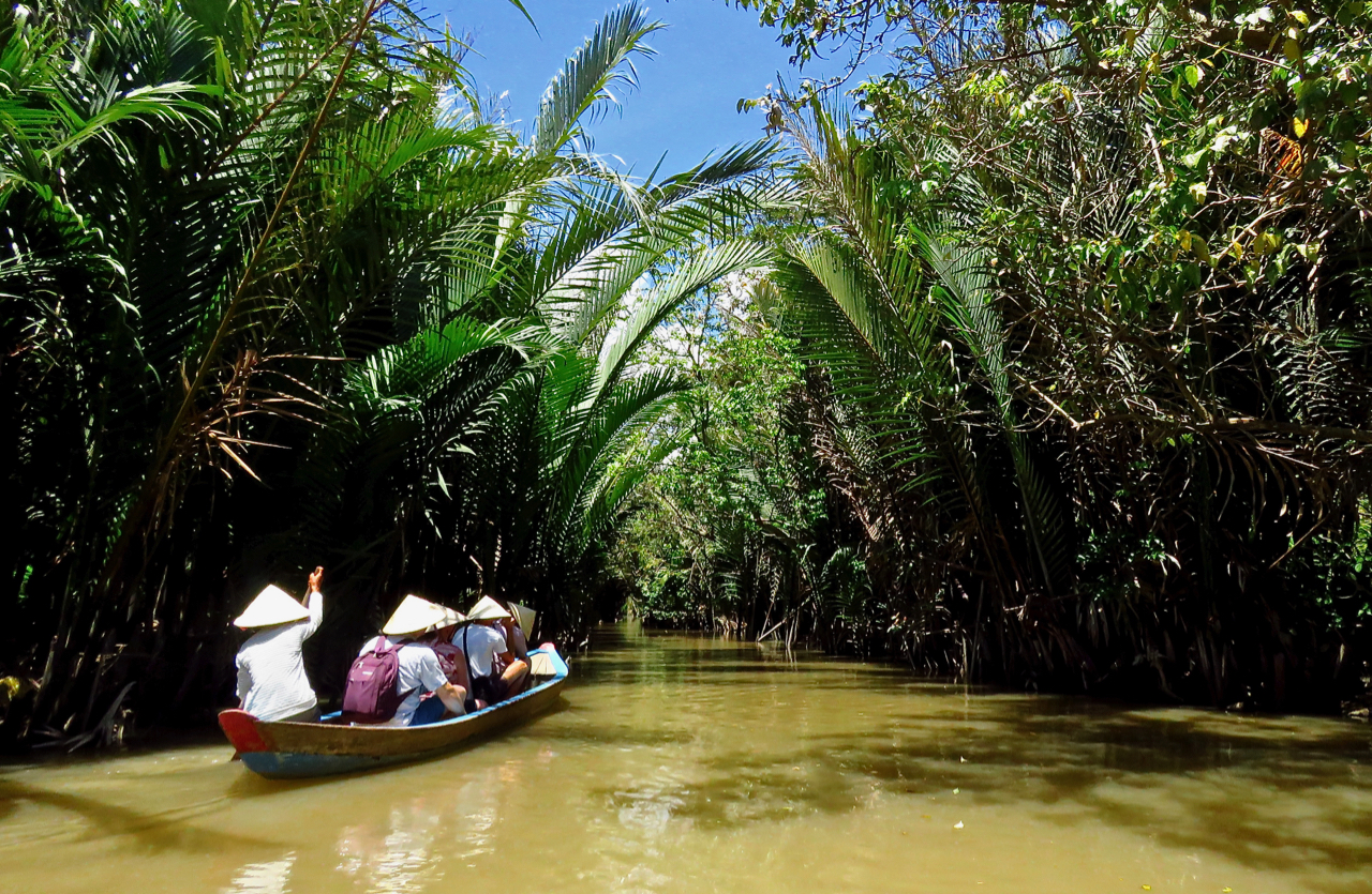 I will remain in Vietnam until Wednesday night but I have to work from this point on, so today, Monday, was the last of my three-day weekend of tourism. Shipping visitors out from Saigon and into the Mekong Delta is a major industry which I was happy to buy into for a day; in case you think there is something ‘authentic’ about this shot let me observe that the four people in the front of this boat are all Europeans of various types. Nevertheless this doesn’t reduce the attractiveness of the place, with its water the colour of milky tea and a general level of peacefulness here on the northern edge of the county of Ben Tre, 90 minutes’ drive south of the big city. Yes, I like Vietnam… highly recommended.
