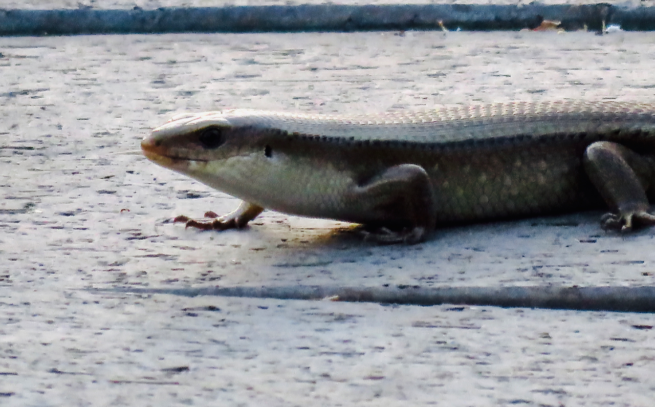 Wildlife has been noticeable by its absence in Vietnam, even in the Delta yesterday: all that has been seen has either been trophy poodles, or a morose looking python in a cage (which I did consider making pic of the day, I admit). But I transferred today from the very centre of the city to a more suburban part, and by the lagoon of Hồ bán nguyệt [don’t ask me how you get those diacriticals on there — I just copied-and-pasted], I spotted this lizard, a skink I assume, before it spotted me.
