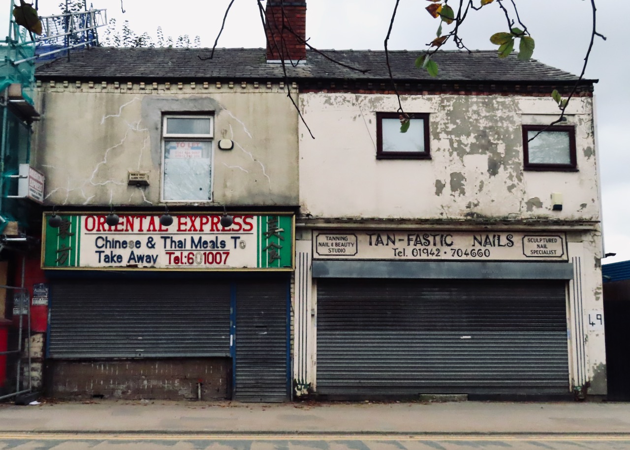 Perhaps this shot is unfair on a place that I’d never visited before today (thus, it becomes place number 364 to feature on the blog), as Leigh seemed lively enough, but I just liked the decrepitude of these two buildings. Maybe these businesses are rocking on a weekday evening, but not on this warm and bright Saturday afternoon. But if you want to find out, well, the phone numbers are there.